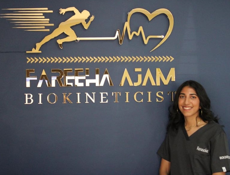 At the heart of our practice is Fareeha Ajam, a qualified and dedicated biokineticist committed to helping you move better and live stronger. With extensive experience in exercise therapy and rehabilitation, Fareeha works closely with each client to create tailored treatment plans that restore mobility, build strength, and support long-term wellness. Whether you're recovering from an injury or looking to improve your physical function, you're in expert hands.